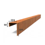 Profile przejściowe w kształcie litery U ze stali kortenowskiej charakteryzują się grubością 2 mm i są dostępne w pięciu różnych szerokościach. Profile w kształcie litery U dostępne są w dwóch formatach: o dwóch równych bokach 50 mm lub dwóch bokach o różnych długościach 50 mm i 150 mm. Profile w kształcie litery U mają długość 2300 mm.